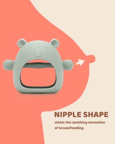 2 Packs Baby Teething Toy Silicone Bear Teething Mitten for Babies Over 3 Months Anti Dropping Wrist Hand Teethers Baby Chew Toys for Sucking Needs, BPA Free