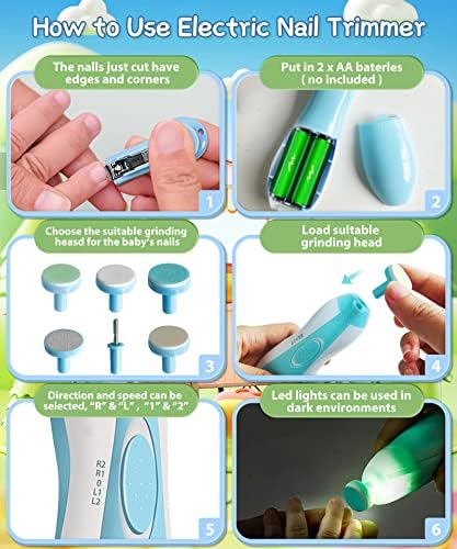 With LED lighting , whisper quiet, low vibrationEasy-to-use and ergonomically design with 360 ° adjustable rotation (clockwise/reverse) and controllable 4-speed.6 grinding heads suitable for different ages with 3 sandpaper file head attachments suitable for babies, 3 adult file head attachments.Safe, long standby