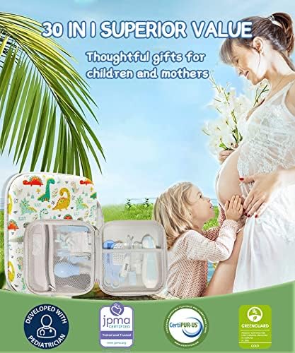 【Complete Baby Care Kits】This newborn care kit will contain the tools you need to solve baby problems: Baby electric nail care kits (15 Pcs), Baby healthcare kit (12 Pcs), Baby hair brush comb kit (3 Pcs). Baby necessities grooming kit are made of high-quality stainless steel and ABS high-quality plastic, BPA-free. Portable storage bag is convenient to organize and carry, suitable for home travel or on the go. (From newborn to 3 year-old)