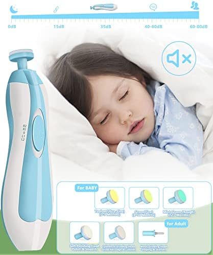 【2023 Newest Baby Electric Nail Care Kit】15Pcs Queenii baby nail trimmer set (1 baby nail trimmer ,6 grinding heads,1 nail clipper, 6 nail files& 1 metal nail files). The super soft baby nail trimmer protects the cuticle or soft nail bed to the greatest extent, which can file down baby’s nails in no time, but will get the job done without hurting baby’s finger. It is suitable for adults aslo.