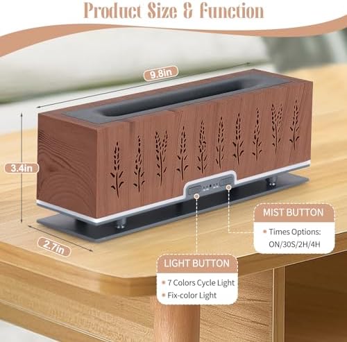 【Timing & Remote Control】- The diffuser has a 200ML water tank, a filling of water can be used continuously for more than 8 hours, very convenient. Our aromatherapy diffuser has 4 time setting modes: ON/2H/4H continuous or 30s intermittent, easy to use. It comes with an easy to use remote control that can manage power, timing, mist intensity, and 7 Color light changing.