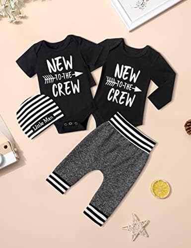 💝UNIQUE STYLISH DESIGN: Classical letter print–NEW TO THE CREW,little man hat,Long Pants,Long sleeve and Short Sleeve romper can be changed for the season.