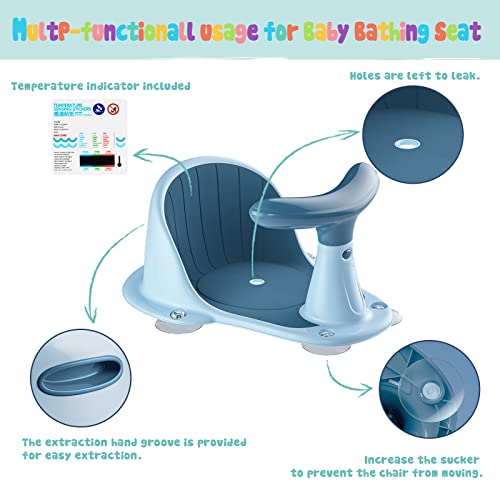 【Great Bath Partner with Optimal Support】Bathing your active baby can be challenging and stressful without proper support, the infant bath seat has front guard, backrest,and 5 strong suction cups for optimal support, allow infants to sit while taking a bath especially for babies who cannot stand well independently, protect your child from getting hurt.