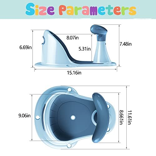【Fit for Differnt Size Tubs】The baby bathtub seat is in size of 15.16*11.61*7.48in (38.5*29.5*19cm), can be put in any toddler/regular/adult tubs, which can help your baby to use big tub and no longer worry about slipping and banging head. If your family having twin/two babies or toddlers, you can put two seats in your adult tub, so that you could bath both babies in the mean time, very good time and water saver!