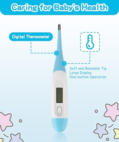 SPECIALLY DESIGNED FOR BABY: 1. Grooming set: scissors with round blades, round teeth, gentle and non-irritating, suitable for baby’s hair combing use; 2. Plastic tweezers, nasal aspirator and nail clippers with stopper to ensure baby’s safety and comfort when using; 3. Dropper and measuring spoon with scale, convenient for you to accurately measure the amount, comfortable silicone finger toothbrushh and tongue cleaning stick, clean baby’s teeth and tongue.