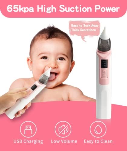 Electric Nasal Aspirator: the baby nasal aspirator has 6 adjustable suction modes and comes with two silicone tip sizes for newborn noses and toddlers. Mom can choose the corresponding silicone tip as well as adjust the suction mode of the nasal aspirator according to the baby’s needs.