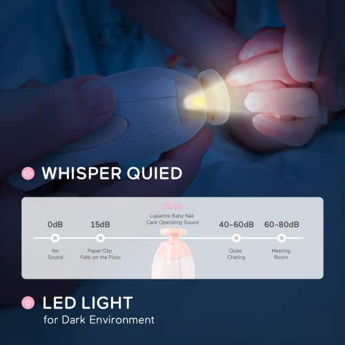 Whisper-Quiet & Front Light – Lupantte baby nail clippers with the whisper-quiet motor and LED front light, you can trim or polish baby nails even they’re sleeping. No noise, no need to turn on the room light.