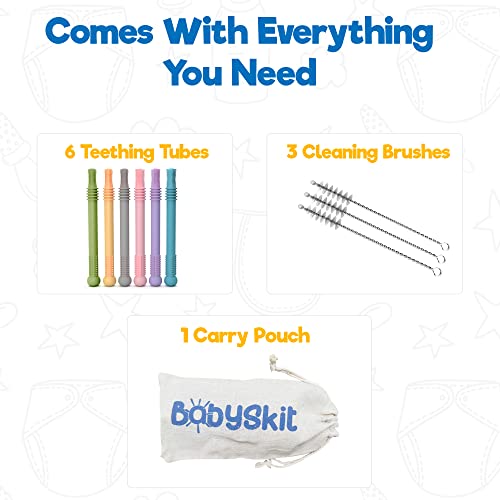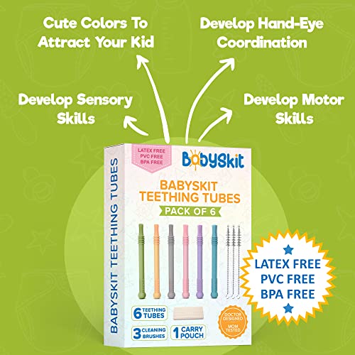 💯 SAFEST BABY MATERIAL Straw teethers are made from the safest food grade BPA & lead free silicone for baby teething relief. The chew tube baby product you will never regret buying, providing teething relief for babies 6-12 months