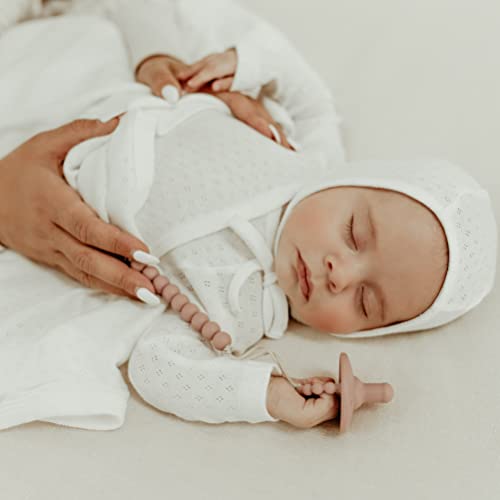 Soothe your baby’s teething pain with our practical and stylish pacifier clips. Our beaded design is perfect for providing a calming and soothing effect during teething periods, while the durable silicone material means it can withstand all of your little one’s adventures.
