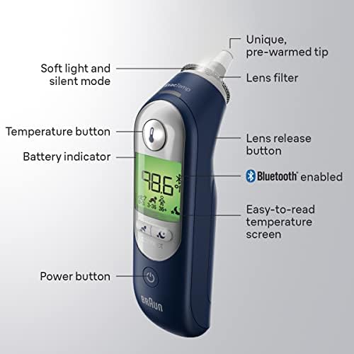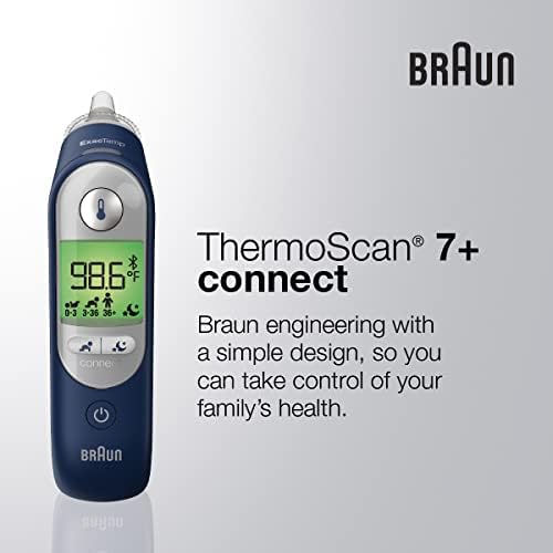 Braun ThermoScan 7+ Connect Digital Thermometer delivers accurate temperature results in seconds, for the whole family. Easy-to- use, this in ear thermometer features Age Precision technology with color coded temperature guidance based on the age range of the child or adult. Unlike other medical grade thermometers, this has a pre-warmed tip that ensures comfort for accurate readings. Access to the Braun Family Care smartphone app is included for seamless management of your family’s healthcare. Created exclusively for use with Braun’s Bluetooth connected thermometer, the app automatically syncs temperature readings for each user via Bluetooth. Use this app to automatically track temperatures, log symptoms and medication intake. Set up notifications for treatment reminders and doctor appointments. Keep track of cold and flu in your area with the map and seamlessly manage your family health journal. Thermometer can be used with or without the app. Braun ear thermometers help you stay in control of your family’s health. Infrared technology gently takes temperatures. Clinically- proven as accurate as rectal thermometer in newborns. Ear is the best site for accurate temperature taking with your babies, toddlers, kids, and adults. Disposable ear thermometer lens filters make sharing sanitary. *Based on an Ardent Consulting Survey reporting that of the surveyed pediatricians who recommend a brand of thermometers to their patients, Braun is the most recommended brand.