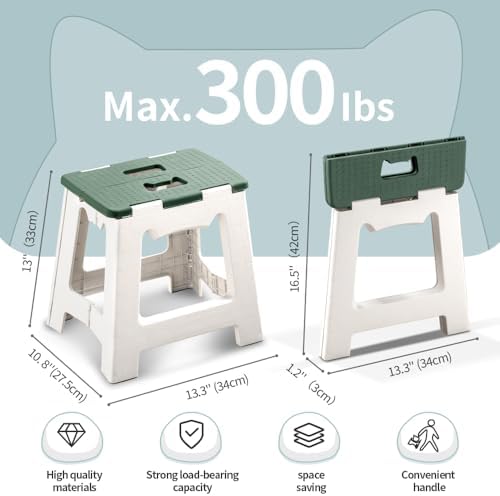 👍Details & Sizes: Unique cute kitty small step stool for kids. Maximum weight limit is 300 lbs when sitting on it; 12.2″ long, 8.2″ wide, and 13″ high when unfolded; 12.2″ long, 1.1″ wide, and 16.6″ high when folded.