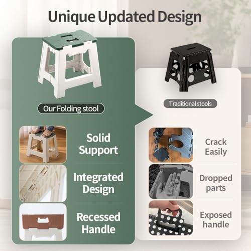 👍Safety First: Our foldable stools have a cute kitty design non-slip top surface and rubber feet designed for maximum grip to prevent slips and falls. The rounded corners and tight hinges make it safe for kids.