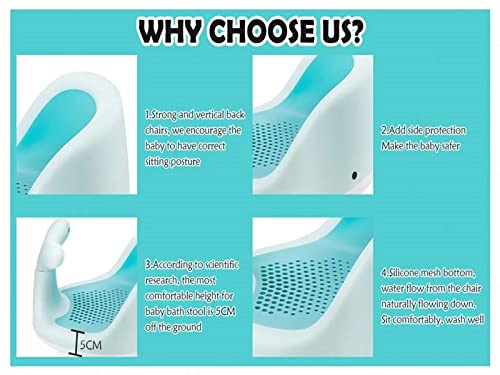 SUCKING DESIGN:The 4 suction cups on the bottom of the chair ensure your baby’s safety in the bathtub, providing hands-free support and making it nearly impossible to slide. The baby bath seat size fits all bathtubs, making it perfect for babies of all sizes.