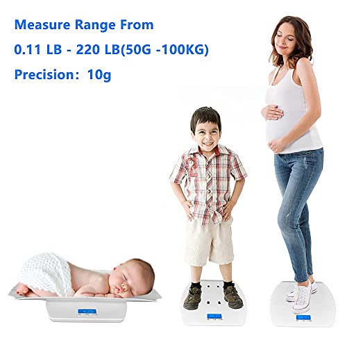 HIGH ACCURACY MEASUREMENT:It utilizes precise algorithm and high precision sensors to provide accurate and stable readings; the baby scale’s measure ranges from 0.1lb-220lb (50g-100kg).Baby scale that weighs in pounds and ounces and kilogram! No matter whether it is stable or not, this scale calculates your child’s weight accurately in seconds.