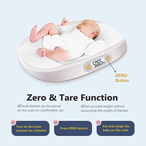 You can place a small blanket on the scale for baby to use. Before the baby use it, press ‘ZERO’ button to tare the weight of the blanket. You will get accurate data of the baby’s weight.