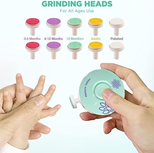 【COMES WITH 10 DIFFERENT LEVEL HEADS】 We designed this baby nail file electric nail trimmer with 10 different level heads to make it perfect for any age. Red for 0-6 months, purple for 6-12 months, green for 1 year+, yellow & pink for adults.