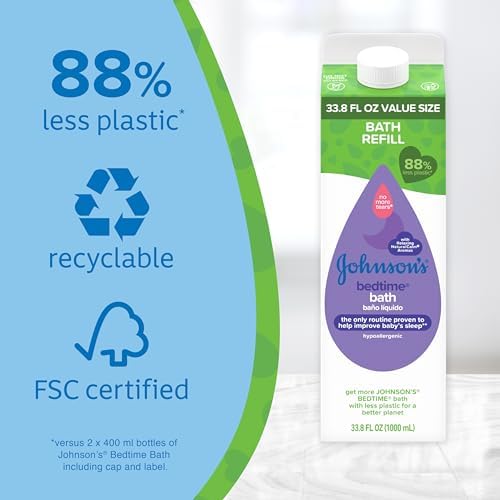 Value size 33.8-fluid ounce refill pack of Johnson’s Bedtime Bath gently cleanses & calms your baby with a special aromatic blend that helps to soothe & relax your little one before bed. Use this carton to refill your Johnson’s Bedtime Bath bottles