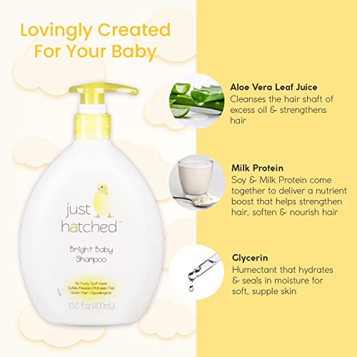 Just Hatched Bright Baby Shampoo Multi-Pack – Gentle Hair Cleanser, Loveable Yummy Fragrance, Gentle for Newborns, Hypoallergenic, Gluten Free, No Yucky Stuff & Harsh Ingredients, 13.5 fl oz (2 Pack)
