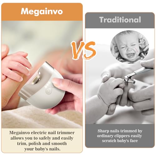 【Ergonomic and Portable】Megainvo baby nail buffer boasts an ergonomic u-shaped design to provide a comfortable and secure grip for effortless nail trimming. With its compact size and included velvet pouch, our baby fingernail file is perfect for on-the-go parents. This electric nail trimmer for baby is crafted from premium BFA-free materials; Its practical functionality, premium construction, and ergonomic design make it a perfect gift for families with babies on christma or a baby shower
