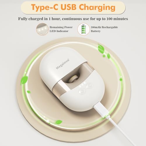 【Convenient USB Rechargeable Design】Megainvo electric nail file baby has a built-in battery that can be easily charged with the included type-c cable, both eco-friendly and budget-saving. Say goodbye to the hassle of constantly replacing batteries and enjoy the convenience of a fully charged trimmer in just 1 hour, lasting for approximately 100 minutes without interuption. The battery level indicator on rechargeable nail file for baby keeps you informed, so you never run out unexpectedly.