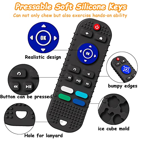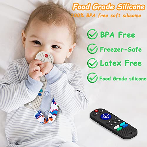 Mgtfbg 2 Pack Soft Silicone Teething Toys for Toddlers, Teething Toys for Babies 6-12 Months – Boys Girls Baby Molar Teether Chew Toys Set, Remote Control Shape Teething Toys Gift(Black+Grey)