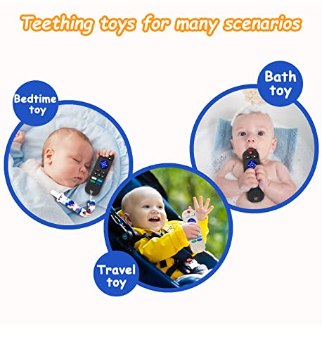 [Unique design] Various shapes of dental gum can better alleviate the discomfort of the baby’s gums. Pressing keys can attract the baby’s attention. The size is perfect for the baby. The back-shaped depression design can enhance the stimulation of the oral cavity, further alleviating dental discomfort, and can also be used as a variety of graphic molds.[Baby Teething Toy Set] Your baby will get two remote control-shaped gums and 2 Pacifier clip of different colors. The teething toy colors are bright, which can improve the baby’s color recognition and cognitive ability. The anti-rope can be attached to the baby’s clothes to avoid falling on the ground during the baby’s use. Suitable for babies aged 3-6 months and 6-12 months.