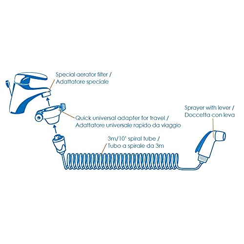 ✅ The package contains: n.1 Hello Bear (with pressure control valve equipped connector, 3mt spiral tube and showerhead) n.1 quick universal adapter Addy; n. 1 metal filter with external thread; n. 1 metal filter with internal thread; n.1 single-jet nozzle for cleaning washable diapers; n. 1 key to unscrew tap filters; n. 1 Bag for Hello Bear n. 1 Multilanguage manual