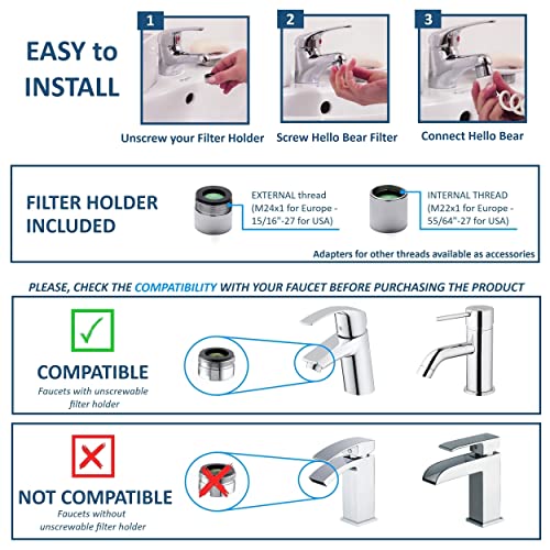 ✅ Includes single-jet nozzle for cleaning washable diapers. Includes Special Filter Adapters for Faucet with Male or Female threads. Thanks to the quick “Addy” universal adapter included, Hello Bear can be directly connected to the faucet without having to unscrew the filter of the faucet: It is the perfect set for those who want to use Hello bear while traveling.