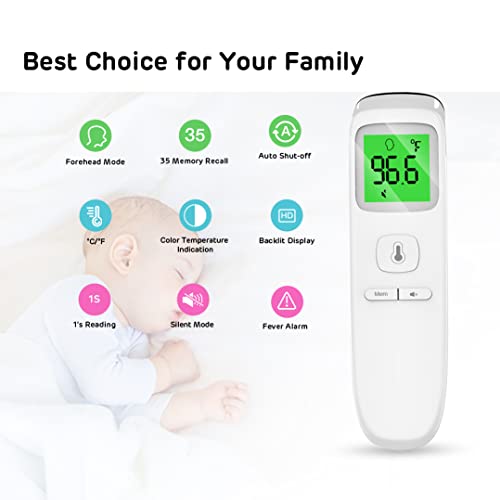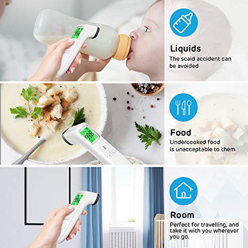 🟢Multi-mode Thermometer: The digital thermometer is designed for all ages, adults, infants, and elders. It not only supports the forehead function but is able to take room/object temperature