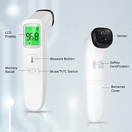 🟡Fast and Easy Temperatures Readings: Taking your family’s temperature with this digital thermometer is as simple as pointing, and pressing a button. It uses infrared technology and can show readings in Celsius or Fahrenheit