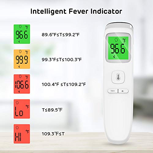 🟡Memory Storage & Auto Fever Alarm: The Forehead thermometer can save 35 sets of temperature readings. You can easily track the historical temperature changes. Its LCD screen has 3 different colors(green/yellow/red) according to different temperature levels. abnormal temperature(red screen) will be accompanied by a warning sound