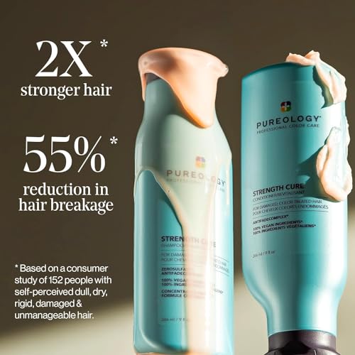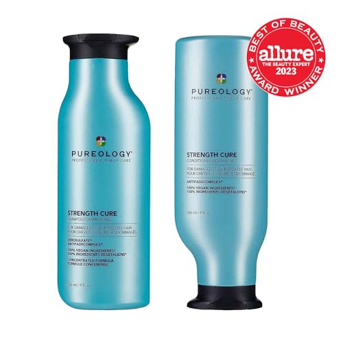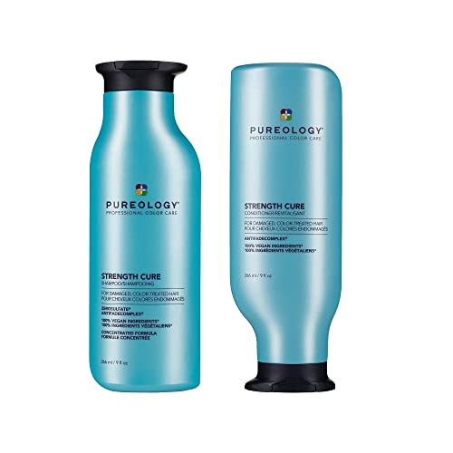 Pureology Strength Cure Damaged Hair Shampoo and Conditioner Set | For Strengthening Color Treated Hair | Sulfate-Free | Vegan | Paraben-Free