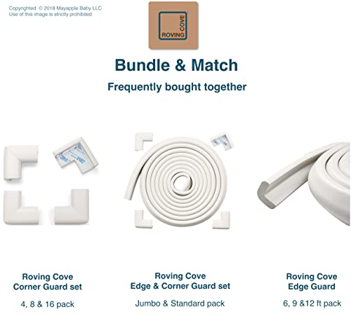 DENSEST: Density is more important than thickness; when it comes to softening impact. Roving Cove corner guards measure Shore A 20-N density, much more than the industry standard of 13. Soft, high-density, premium corner cushions absorb impact and protect your loved ones from the sharp corners and edges in your home (nursery, kitchen, fireplace, coffee table), school, daycare, preschool, hospital, senior facility, nursing home, factory, office, museum, restaurant, hotel and more.