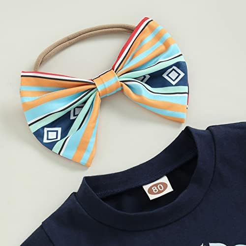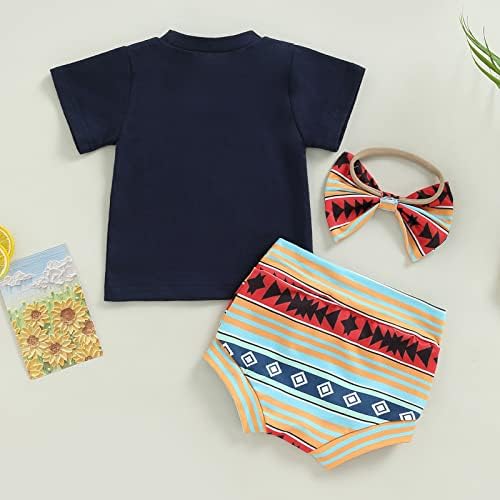 CUTE DESIGN— The Newborn girl shirt has short sleeve, round neck, bull print, showing active and energetic style. The kids short pants have print, with headband.