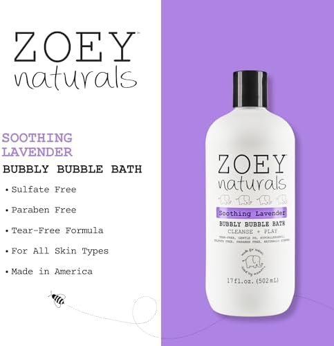 Zoey Naturals – Soothing Lavender Bubble Bath for Kids & Babies, Tear-Free Moisturizing Toddler Soap with Aloe & Avocado Oil for Calm Experience – Made in USA, 17 oz